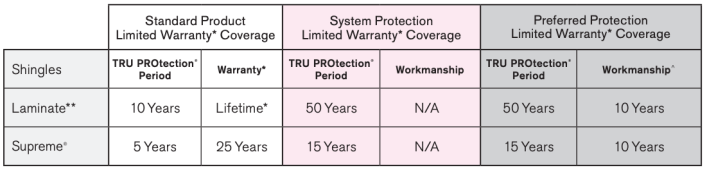 Full replacement coverage for manufacturing defects on your Owens Corning® shingles and all Owens Corning® roofing components for 50 years.